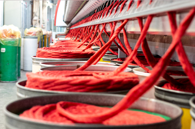 A empresa também trabalha no desenvolvimento de fios personalizados, feitos de acordo com os padrões mais rigorosos, e oferece um serviço de comercialização e tingimento .